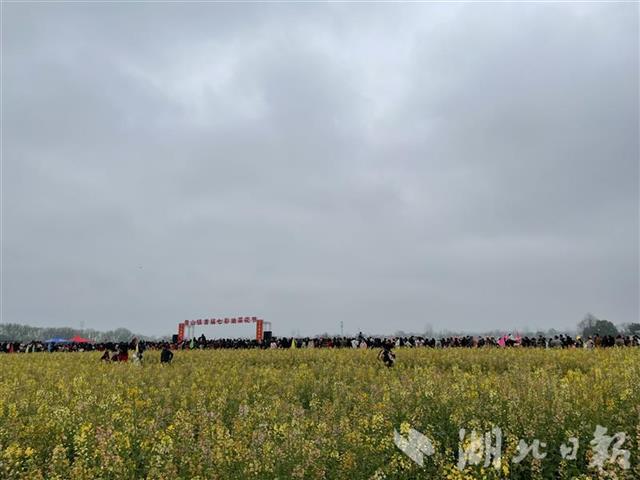 油菜花有普通的黃色、橙黃、桃紅、紫紅等顏色,游客擠在田埂上拍照。青山鎮(zhèn)在菜地里搭起了舞臺(tái),舉辦首屆七彩油菜花節(jié)開(kāi)幕式,提琴戲、腰鼓等好戲連臺(tái),《我家在崇陽(yáng)》歌聲在花海中回蕩。