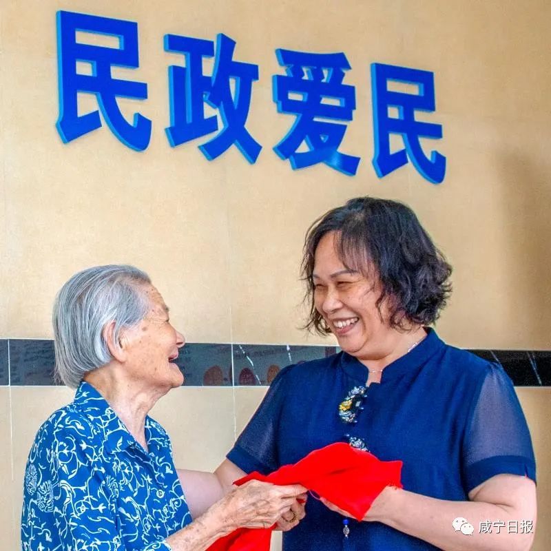 歷經(jīng)百年風霜,老人仍舊身姿挺拔、面容紅潤、精神矍鑠,左手拄著拐杖,右手拿著用紅布包著的黨旗,走進區(qū)民政局大門。