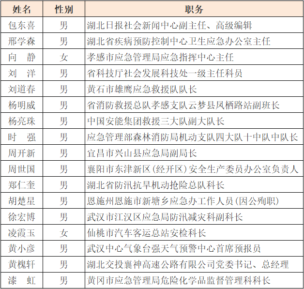 第二屆“荊楚楷?!ぷ蠲缿?yīng)急人”宣傳展示活動候選人名單