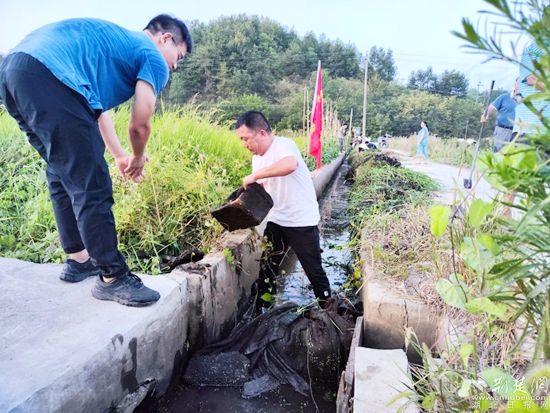 8月15日,窯上咀村窯魯大畈人頭攢動(dòng),在鎮(zhèn)黨委的組織下,由3個(gè)支部的黨員、群眾組成的清渠專班正配合著挖掘機(jī)施工作業(yè)?!叭罕娦枰裁矗覀凕h員就干什么。”黨員郭亞榮說(shuō)。大家手揮舞著鐮刀、鋤頭、鐵鍬、鋼叉等農(nóng)具,割草、清溝、排淤、除沙分工有序、各司其責(zé)。