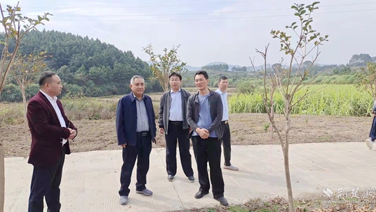 張開華教授在家鄉(xiāng)考察調(diào)研(左二)。通訊員 供圖