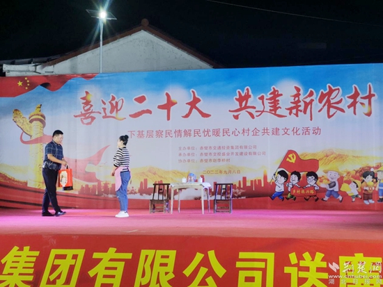 荊楚網(wǎng)(湖北日報(bào)網(wǎng))訊(通訊員李傳麗 楊婷 楊芳)中秋節(jié)即將來臨,為豐富廣大黨員干部群眾的精神文化生活,營造節(jié)日喜慶氛圍。9月8日晚,赤壁交投集團(tuán)在該市趙李橋鎮(zhèn)趙李橋村舉辦“喜迎二十大 共建新農(nóng)村”送廉文化下鄉(xiāng)主題晚會(huì),以文化浸潤凝聚黨心民心,用文化展現(xiàn)從嚴(yán)治黨,弘揚(yáng)清風(fēng)正氣。