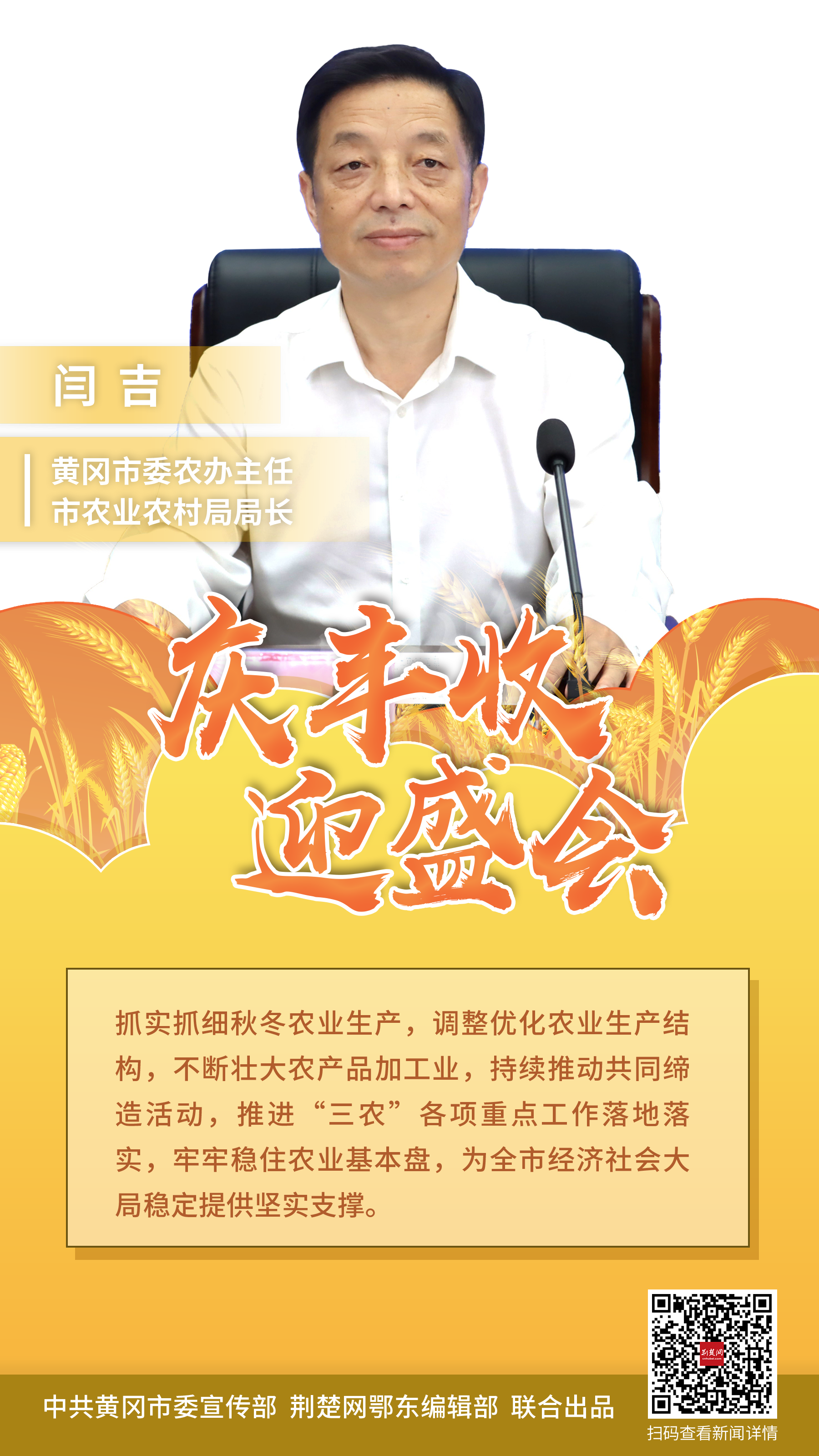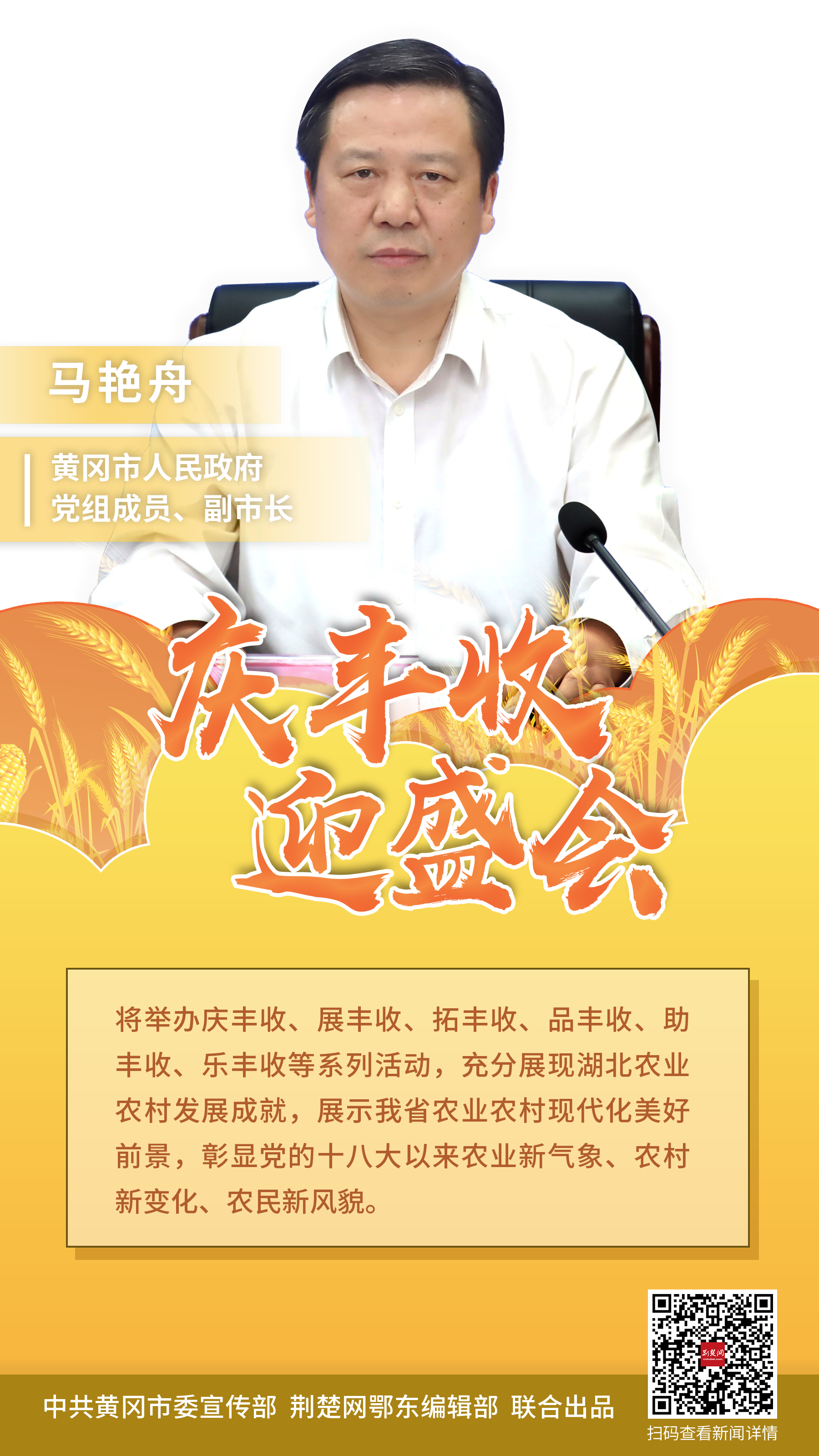 此次活動(dòng)由省農(nóng)業(yè)農(nóng)村廳和黃岡市人民政府共同主辦,以“慶豐收 迎盛會(huì)”為主題,定于9月23日在麻城市舉辦開(kāi)幕式。