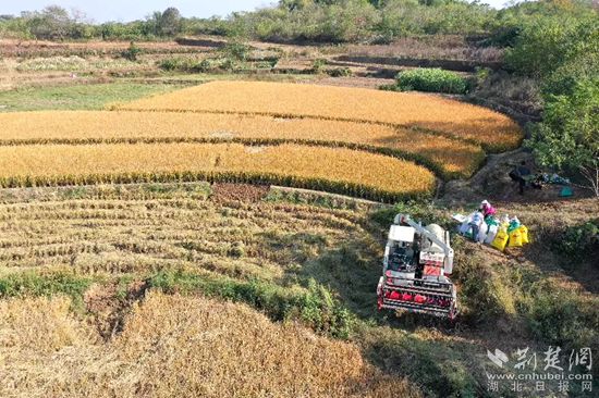 種糧大戶熊海華收割稻谷。