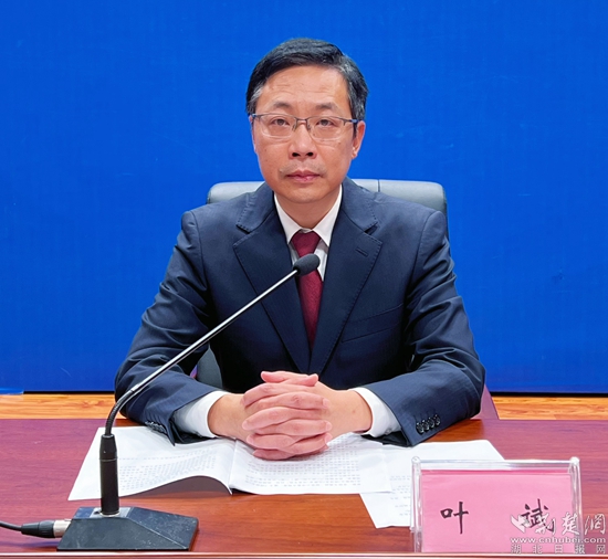 鄂州市水利和湖泊局局長、市河湖長制辦公室主任葉斌就記者提問進行回答。金康 攝