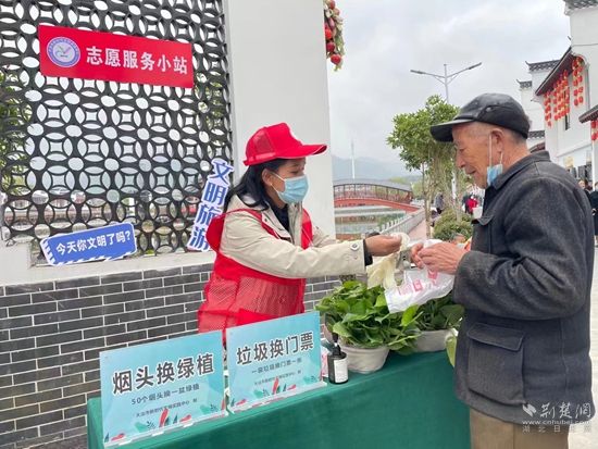 活動(dòng)現(xiàn)場(chǎng),大冶市新時(shí)代文明實(shí)踐中心還設(shè)置了志愿服務(wù)小站,開(kāi)展“垃圾換門票”“煙頭換綠植”的文明旅游主題活動(dòng)。