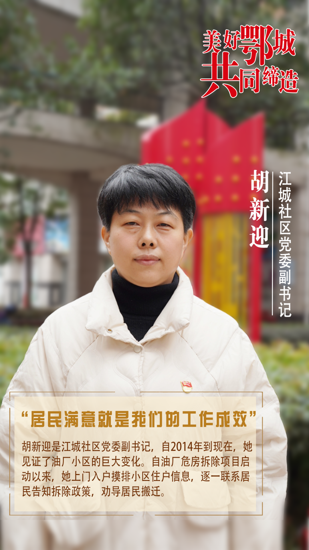 胡新迎是江城社區(qū)黨委副書記,自2014年到現(xiàn)在,她見證了油廠小區(qū)的巨大變化。自油廠危房拆除項目啟動以來,她上門入戶摸排小區(qū)住戶信息,逐一聯(lián)系居民告知拆除政策,勸導居民搬遷。