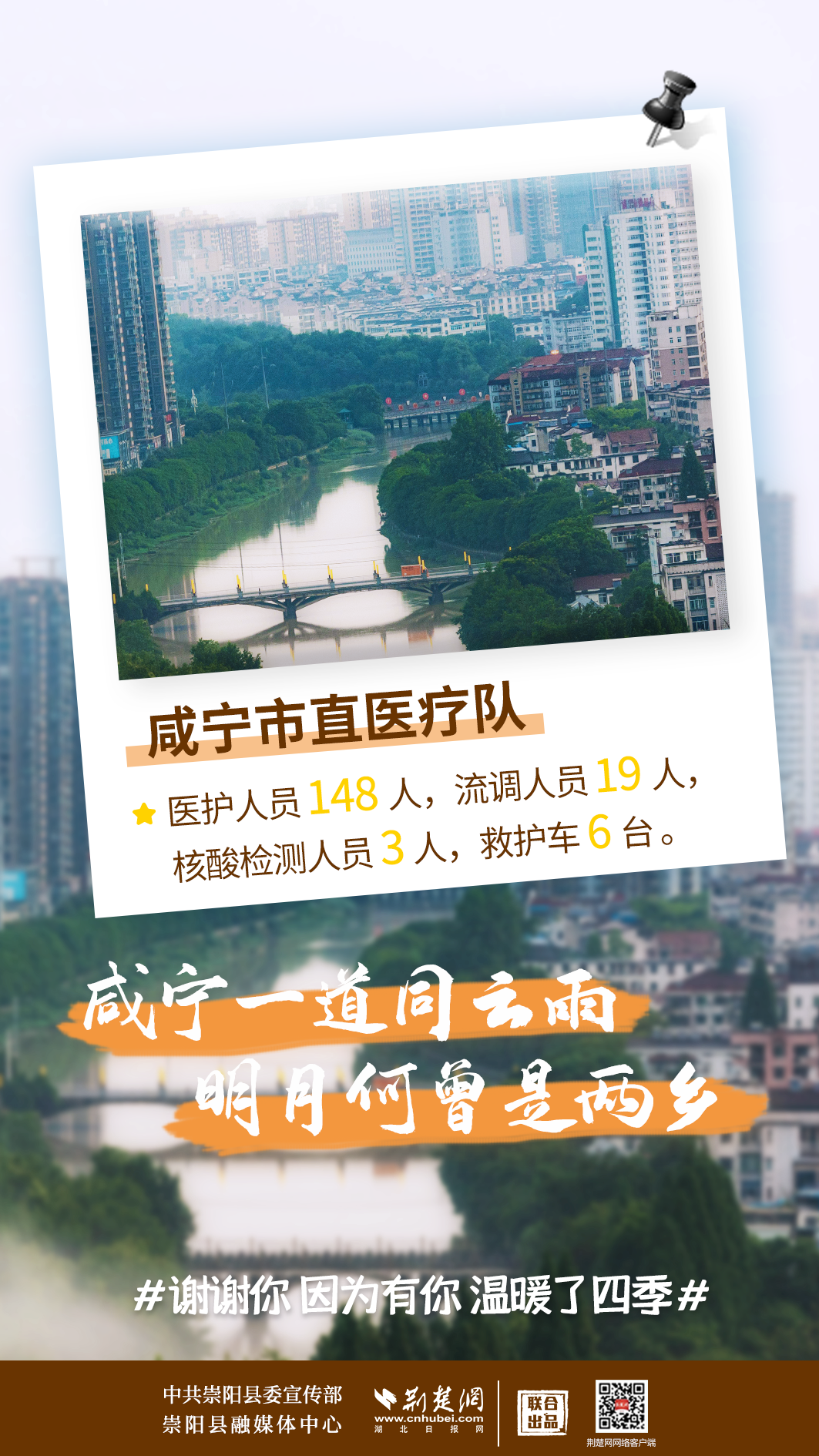 修我甲兵,與子偕行。在崇陽(yáng)縣疫情防控形勢(shì)最嚴(yán)峻、最艱難的時(shí)刻,來(lái)自咸寧市直、通山縣、通城縣、嘉魚縣4支醫(yī)療隊(duì),489名醫(yī)務(wù)人員,火速支援崇陽(yáng)抗疫,馬不卸鞍,人不解甲,便同51萬(wàn)崇陽(yáng)人民一道相守偕行,并肩作戰(zhàn)。