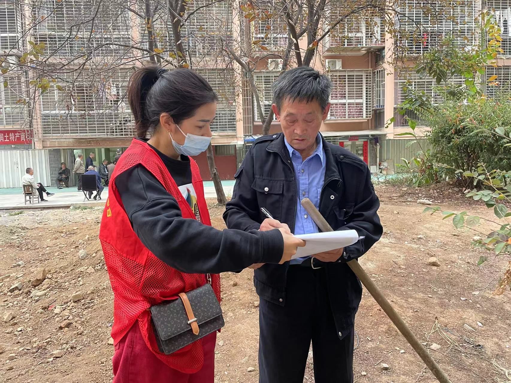 在社區(qū)的指導下,小區(qū)業(yè)委會主任邵忠新與小區(qū)老黨員、網格員等一起,挨家挨戶征求居民對停車位改造的意見和建議。