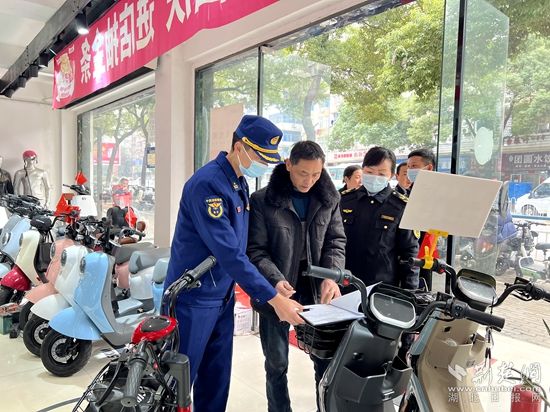 荊楚網(湖北日報網)訊(通訊員盧雅婕)為加強電動自行車銷售領域安全管理,12月7日,黃石市黃石港區(qū)消防救援大隊聯合市場監(jiān)督管理局對電動自行車經營場所安全隱患開展專項排查整治。