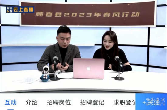 荊楚網(wǎng)(湖北日?qǐng)?bào)網(wǎng))訊(通訊員 呂雷 張聰 陳鈺)“請(qǐng)問有沒有長(zhǎng)白班的工作?”“我們公司里有長(zhǎng)白班,有需求聯(lián)系我!”1月10日,蘄春縣舉辦了主題為“春風(fēng)行動(dòng)惠民生,就業(yè)服務(wù)促發(fā)展”的“直播帶崗”云上招聘會(huì)。