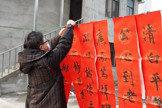 翰墨飄香,迎春納福。3名書法家現(xiàn)場潑墨揮毫,寫春聯(lián)、送福字?!耙簧碚龤飧遗鲇玻瑑尚淝屣L不染塵”,通過寫“廉”聯(lián),讓新年更添風清氣正之色。民間藝術家們帶來音樂快板《竹板聲聲頌清廉》和廉政楚劇《門道》,在一聲聲“廉”板和“廉”戲聲中,為群眾、干部帶來廉潔文化洗禮。最后,一場老少皆宜的《踩蓮船》表演,讓現(xiàn)場觀眾捧腹大笑、樂不可支。