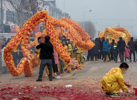 荊楚網(wǎng)(湖北日報(bào)網(wǎng))訊(通訊員 董劍橋 陳鈺)2月5日,蘄春縣金龍鬧元宵巡游活動拉開序幕,由橫車鎮(zhèn)界嶺村民自發(fā)組織的三條舞龍隊(duì)伍敲鑼打鼓、踏歌起舞,整個小鎮(zhèn)人聲鼎沸、熱鬧非凡。
