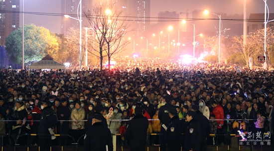 當(dāng)晚,在武山湖南門(mén)戶廣場(chǎng)、環(huán)湖大道擠滿了前來(lái)觀看的市民游客。大約7時(shí)許,武穴萬(wàn)人空巷,城東的幾條主干道上,車流滾滾,游人如織。