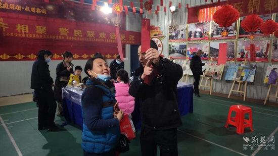 隨著教導(dǎo)員陳才和宣布猜燈謎活動開始,一場“最強大腦”猜燈謎爭奪賽在這里上演。自信滿滿的市民群眾們紛紛將謎面摘下,并將自己猜出的謎底與副所長姜萍核對,答對者立即獲得小禮品一份。在猜燈謎活動現(xiàn)場,穿插著的妙趣橫生的警民互動,將現(xiàn)場氣氛推向高潮,歡聲笑語不斷。