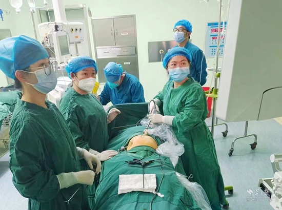婦科主任張輝立即要求科室開放綠色通道積極組織搶救。護理團隊快速精準地開放兩條靜脈通道,張輝簡要了解患者病史及檢查資料后明確診斷:異位妊娠,腹腔內(nèi)大出血,失血性休克,指示立即將患者轉(zhuǎn)運手術(shù)室急診手術(shù)。