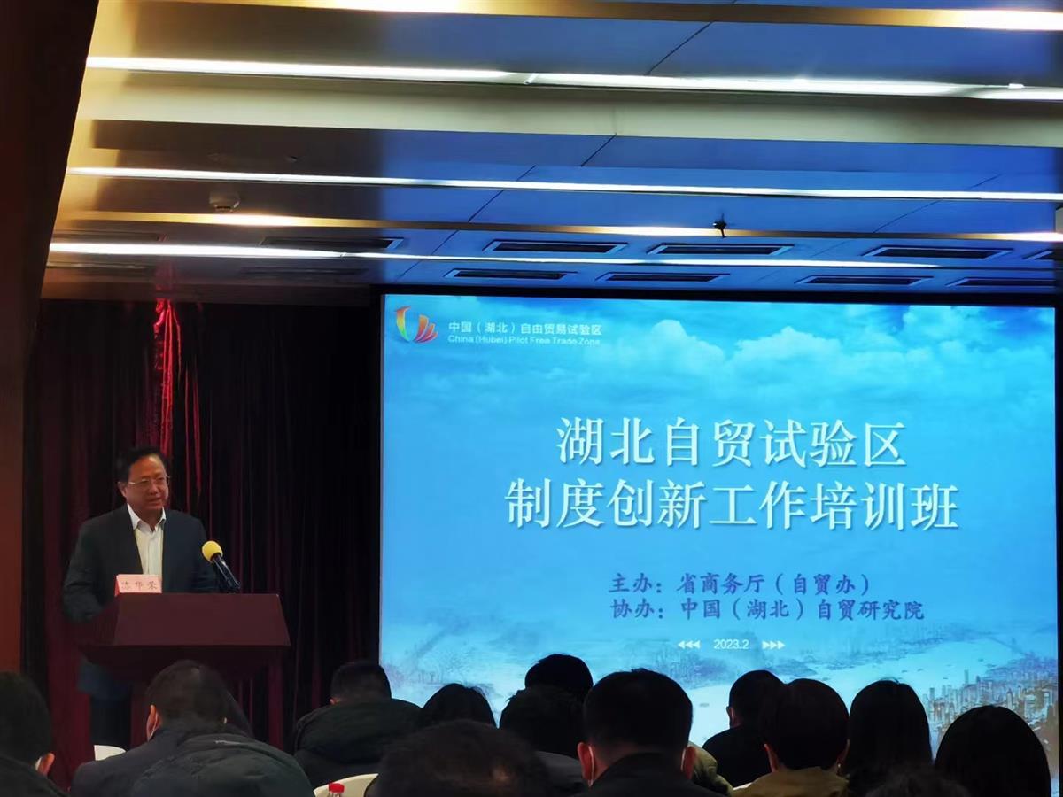 培訓(xùn)會(huì)上,省商務(wù)廳、省營(yíng)商辦、湖北自貿(mào)研究院分別圍繞“關(guān)于湖北自貿(mào)創(chuàng)新工作的實(shí)踐與思考”“以自貿(mào)試驗(yàn)區(qū)引領(lǐng)全省營(yíng)商環(huán)境優(yōu)化”“以推進(jìn)制度型開(kāi)放為突破口加快打造自貿(mào)試驗(yàn)區(qū)升級(jí)版”等主題進(jìn)行交流,武漢海關(guān)、武漢自貿(mào)片區(qū)分別介紹了自貿(mào)試驗(yàn)區(qū)制度創(chuàng)新和復(fù)制推廣相關(guān)工作成果。