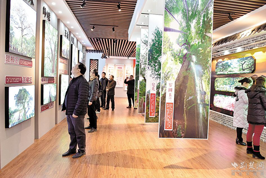 步入羅田縣林業(yè)局一樓大廳,入眼便是古樹名木展館。一群山中“老壽星”以最美的姿容走到這里,入鏡入畫,向我們講述它們身后的故事、科普它們“家族”的知識,這里仿佛是幽靜森林,又仿佛是一片浩瀚無邊史海。