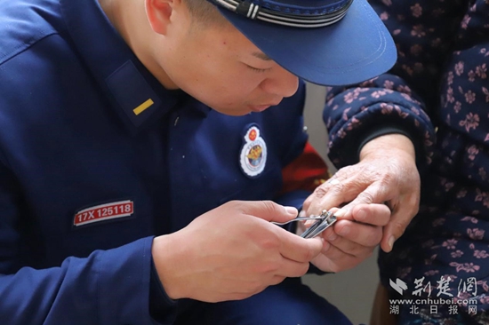 荊楚網(wǎng)(湖北日?qǐng)?bào)網(wǎng))訊(通訊員 黃消宣)在第60個(gè)學(xué)雷鋒紀(jì)念日來(lái)臨之際,黃石市消防救援支隊(duì)大冶大隊(duì)走進(jìn)華祺老年公寓開(kāi)展“學(xué)雷鋒、送溫暖、獻(xiàn)愛(ài)心”活動(dòng)。為老人修剪指甲、聊天解悶,講解應(yīng)急科普知識(shí)……“火焰藍(lán)”用實(shí)際行動(dòng)為老人們送去溫暖和祝福,養(yǎng)老院內(nèi)歡聲笑語(yǔ)此起彼伏。