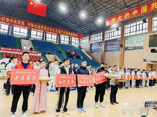 頒獎(jiǎng)儀式上,國(guó)家地理標(biāo)志保護(hù)產(chǎn)品紅安苕、老君眉茶,國(guó)家級(jí)非遺代表性項(xiàng)目紅安繡活,國(guó)家地理標(biāo)志保護(hù)產(chǎn)品、國(guó)家地理標(biāo)志商標(biāo)、省級(jí)非遺代表性項(xiàng)目紅安大布傳統(tǒng)紡織技藝產(chǎn)品,省級(jí)非遺代表性項(xiàng)目紅安油面,市級(jí)非遺代表性項(xiàng)目永河皮子、綠豆粑作為大賽獎(jiǎng)品相繼亮相,既接地氣,又有人氣,村味十足。