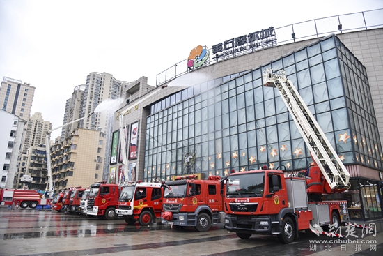 警報拉響、車輪滾滾、應急力量聞令出戰(zhàn);逃生疏散、火場搜救、高噴射水......這一幕幕驚心動魄的場景發(fā)生在黃石市防災減災宣傳周啟動儀式暨城市消防應急疏散演練活動現(xiàn)場。演練活動假設摩爾城中商百貨2樓一商戶裝修動火作業(yè)時不慎引起火災,過火面積約50平方米,有人員被困。市政府迅速啟動應急預案,調(diào)集應急力量參與處置。隨著現(xiàn)場指揮令下,單位自救、人員疏散、傷員搜救、冷卻排煙、冷卻滅火以及金屬拉梯救人等諸多演練科目依次上演。