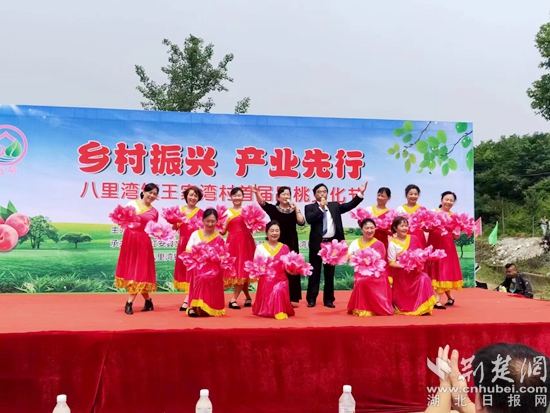 此次活動由八里灣鎮(zhèn)政府主辦,紅安縣文化館、八里灣鎮(zhèn)王家灣村、八里灣鎮(zhèn)文化站、八里灣鎮(zhèn)農(nóng)業(yè)服務中心聯(lián)合承辦,伴隨著大氣優(yōu)美的開場歌舞《春風十里》,桃醉果園廣場上人頭攢動,熱鬧非凡,更有表演唱《辣嫂子》、京劇《智斗》等節(jié)目將演出推向高潮,形式多樣的文藝節(jié)目輪番上演,現(xiàn)場觀眾掌聲雷鳴。