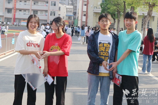 他們當(dāng)中有的考生身穿紅色衣服,預(yù)??荚嚧蠼?;在進考場前,有的考生圍在一起,擺出愛心的手勢,露出自信的笑容,高呼“戰(zhàn)勝高考,我能,我一定能”的口號響徹云霄;有的考生雖然在考前腿部或頭部受傷,但他們沒有顯示畏懼的神態(tài),反而展現(xiàn)了更堅強的毅力與一往無前的勇氣,面帶笑容,堅定地邁入考場……一幕幕從容的畫面詮釋著勇毅前行,一張張自信的笑臉展示著超越自我。