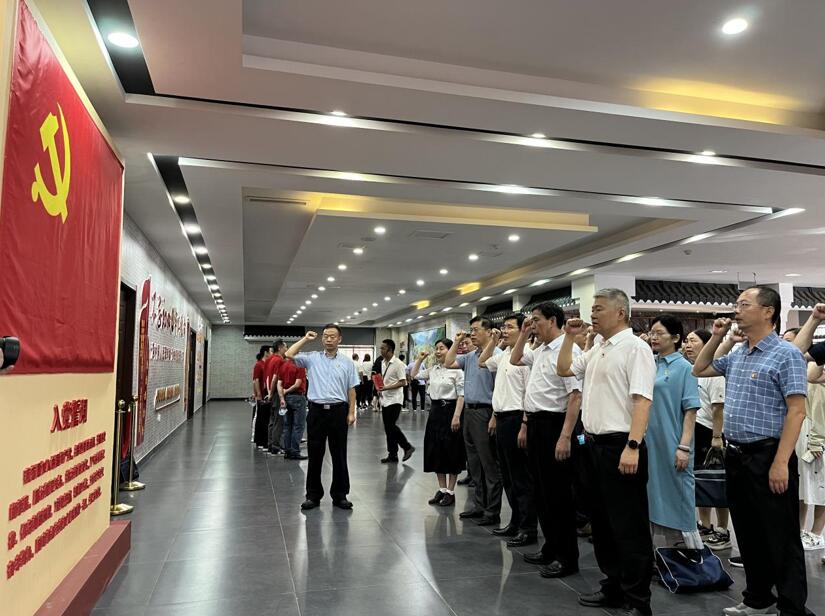 參觀學習后,在陳列館鮮紅的黨旗下,全體黨員高舉右手,開展了重溫入黨誓詞活動。參加活動的全體黨員以一顆赤誠之心,面對黨旗莊嚴宣誓,鏗鏘有力的聲音縈繞在陳列館,久久回蕩。大家通過這種方式熱烈慶祝中國共產(chǎn)黨102周年華誕,通過儀式感召,進一步激發(fā)了廣大黨員的使命感和責任感,激勵參加活動的全體黨員干部保持永不懈怠、奮發(fā)進取的精神狀態(tài),不忘初心,牢記使命,為推動我省高質(zhì)量發(fā)展貢獻生態(tài)環(huán)保力量。