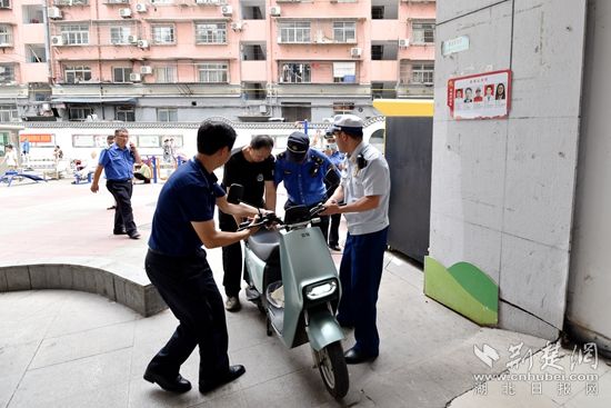 7月2日起,該小區(qū)物業(yè)在樓道醒目處張貼《關(guān)于禁止電動(dòng)自行車、摩托車在樓道內(nèi)停放的公告》,要求電動(dòng)自行車必須停放至小區(qū)停車棚或劃線區(qū)域,并于7月5日前整改完畢,否則將予以拖離。7日上午,聯(lián)合檢查組對小區(qū)個(gè)別仍然停放在樓道內(nèi)的車輛進(jìn)行依法清理移除。