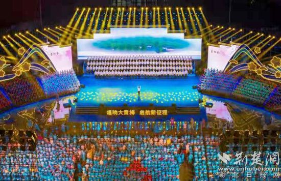 本屆黃梅戲藝術節(jié)的另一大特色是設立分會場。黃梅縣是千年古縣,更是黃梅戲藝術的發(fā)源地,本屆黃梅戲藝術節(jié)特別設置了黃梅縣分會場“唱響大黃梅”——一曲原創(chuàng)黃梅歌《靈潤黃梅》奏響演出序章,黨群口、宣傳口、教育口、政府口、政法口、小池鎮(zhèn)、孔壟鎮(zhèn)、黃梅鎮(zhèn)和全國戲迷等11個黃梅戲演唱方陣身著彩裝競唱黃梅戲經典唱段,千余人齊唱《家在黃梅》,宏大的舞臺,震撼的現(xiàn)場,讓戲迷們著實過足了戲癮。