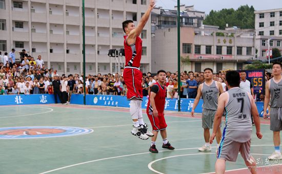 傍晚,華燈初上,匡河小學(xué)籃球場(chǎng)熱鬧非凡,球場(chǎng)周圍群眾揮舞著國旗,喜笑顏開,加油聲、喝彩聲一浪高過一浪。