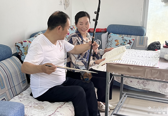 “這句詞應該這么唱……你這個節(jié)拍錯了……”清晨常常成為夫妻倆相互“切磋”的時光。為保證宣講效果,田志剛夫妻利用閑暇時光練習宣講詞、控制好快板的力度和鼓點節(jié)奏,也會在一起唱唱黃梅戲、拉拉二胡、跳跳舞。