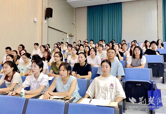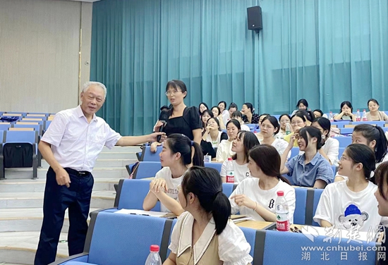 當天上午的培訓邀請全國優(yōu)秀教師、湖北省特級教師桂賢娣為學員授課。桂老師以《弘揚師德潛心育人》為題,向青年教師傳授自己從事教學工作41年間以情感育人、智慧育人的經驗和方法。她結合自身經歷,用幽默的語言和豐富的肢體動作講述一個個教育故事,讓老師們在輕松愉悅的氛圍中感受到了她對教師這份職業(yè)的認同感、滿足感、幸福感。