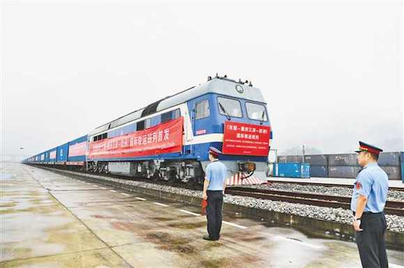(東盟—重慶江津—?dú)W洲)國(guó)際聯(lián)運(yùn)班列。蘇盛宇 攝