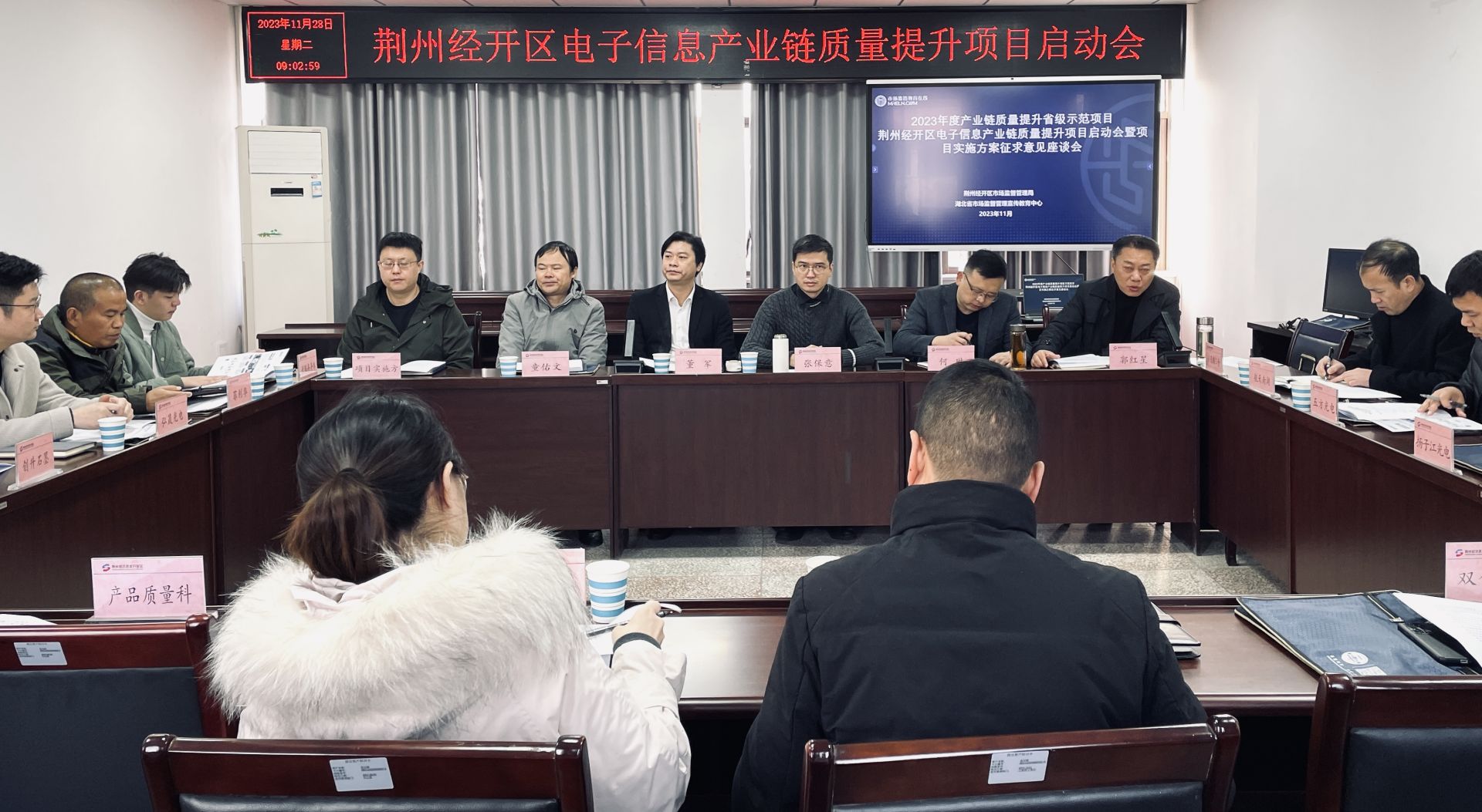 荊楚網(wǎng)(湖北日報網(wǎng))訊(通訊員高俊雅)11月28日,2023年度產(chǎn)業(yè)鏈質(zhì)量提升省級示范項目——荊州經(jīng)開區(qū)電子信息產(chǎn)業(yè)鏈質(zhì)量提升項目啟動會暨項目實施方案征求意見座談會在荊州經(jīng)開區(qū)市場監(jiān)管局舉辦,荊州市區(qū)兩級市場監(jiān)管系統(tǒng)有關(guān)領(lǐng)導(dǎo)、荊州經(jīng)開區(qū)管委會有關(guān)部門負(fù)責(zé)人、質(zhì)量提升專家工作組及區(qū)內(nèi)相關(guān)企業(yè)代表30余人參加會議。