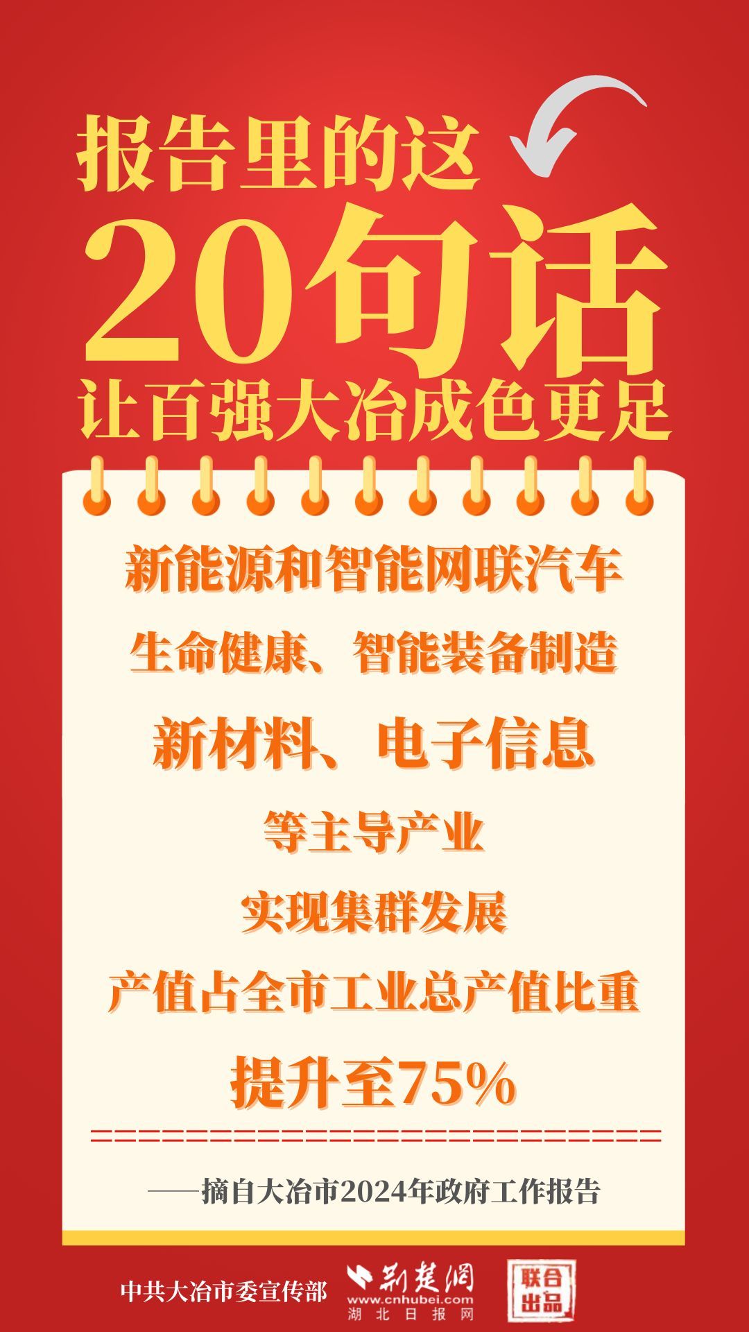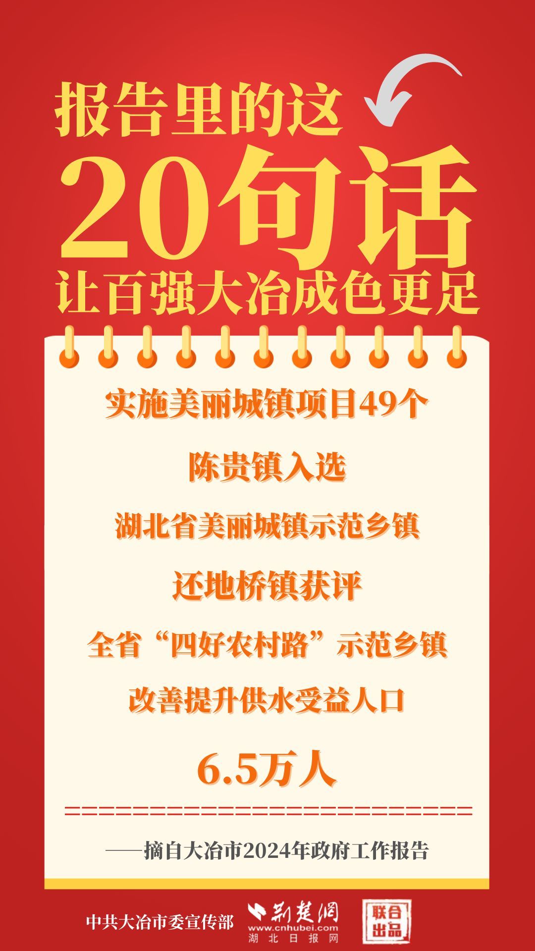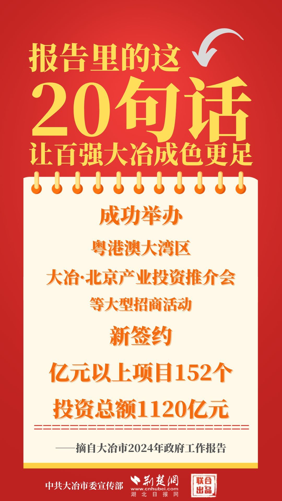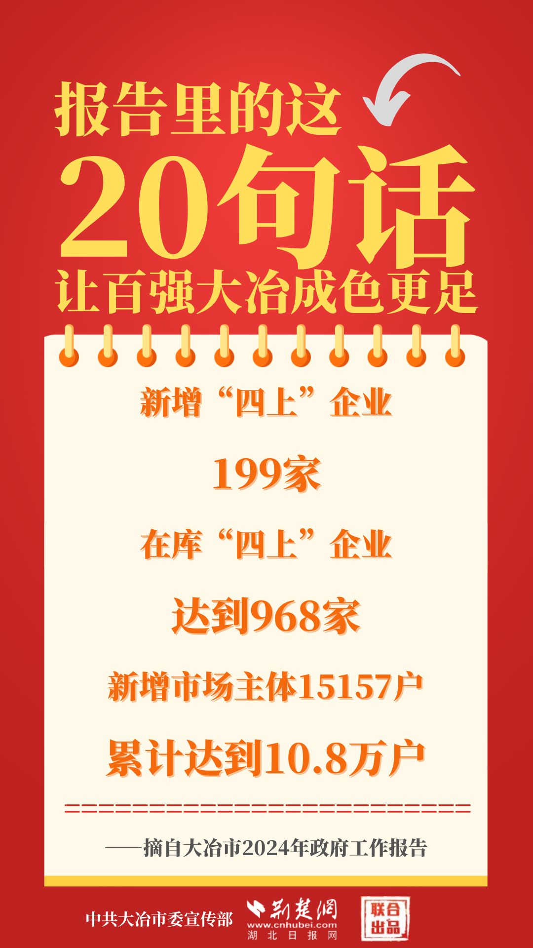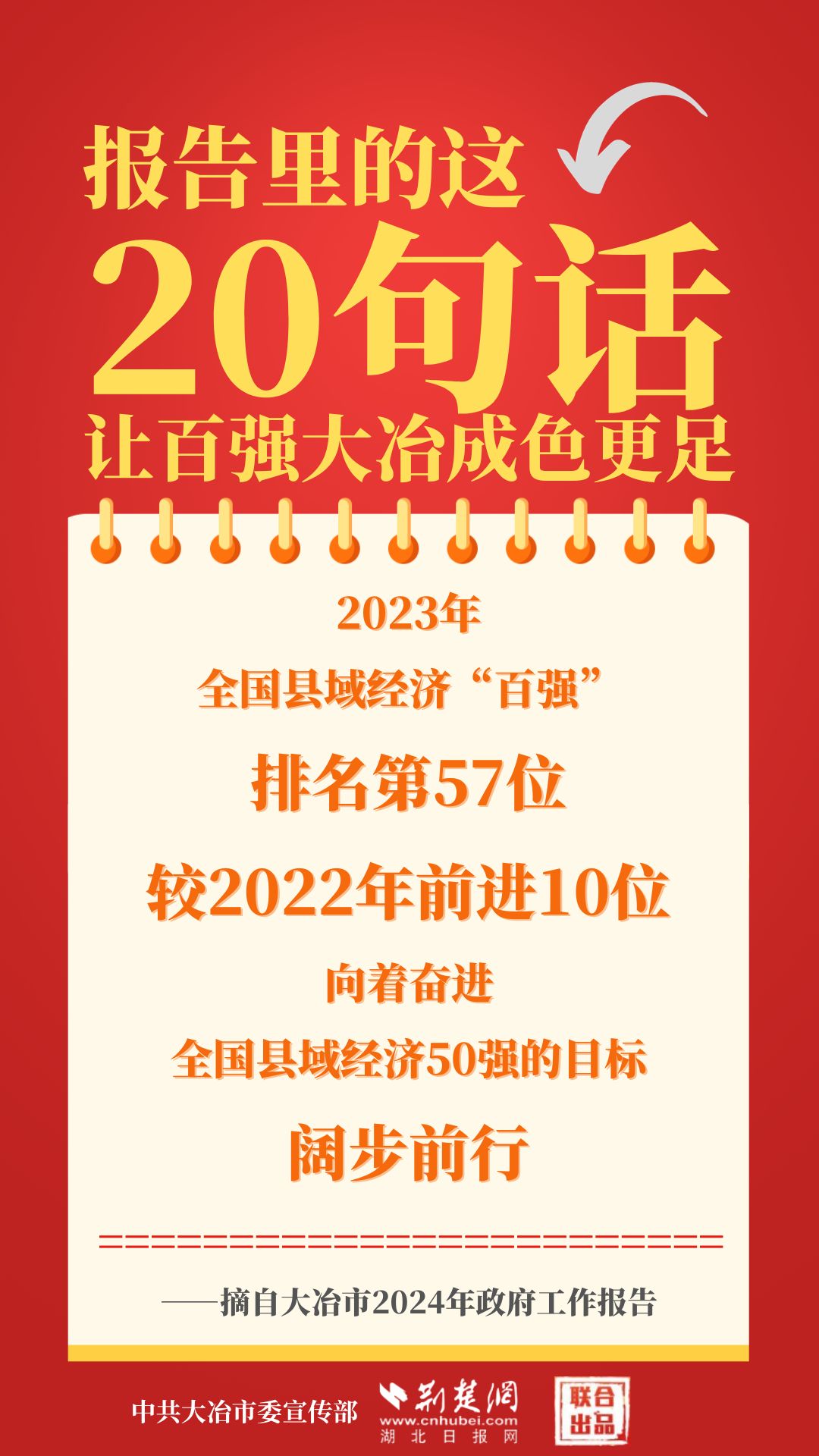 1月12日,大冶市第七屆人民代表大會(huì)第四次會(huì)議開幕,大冶市委副書記、市長(zhǎng)孫輒作政府工作報(bào)告。報(bào)告里的這20句話,讓百強(qiáng)大冶成色更足。