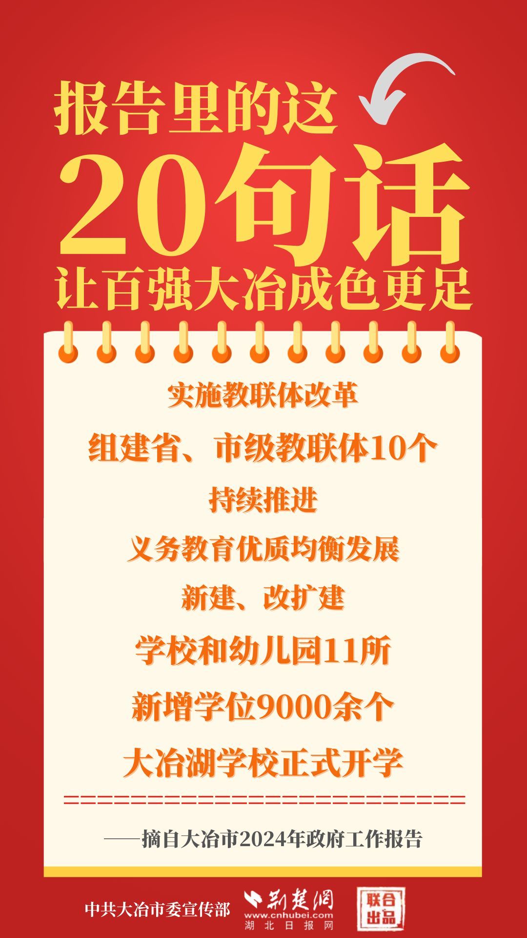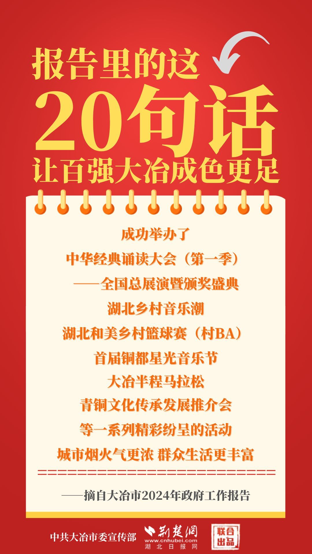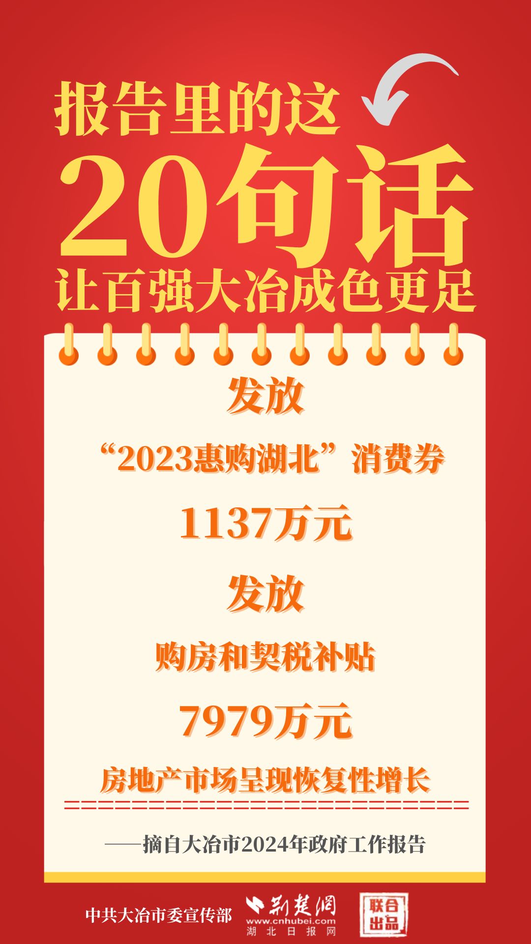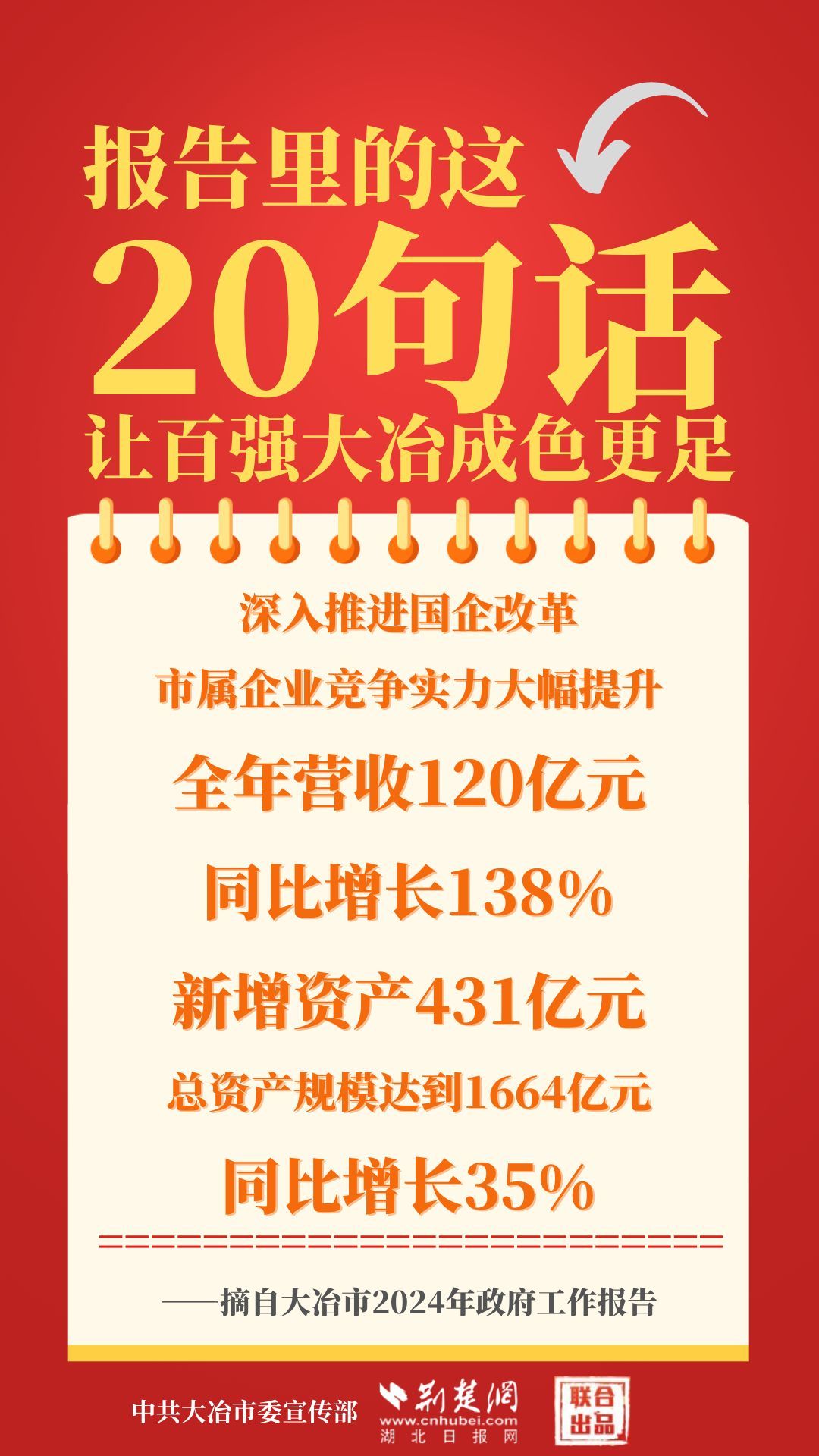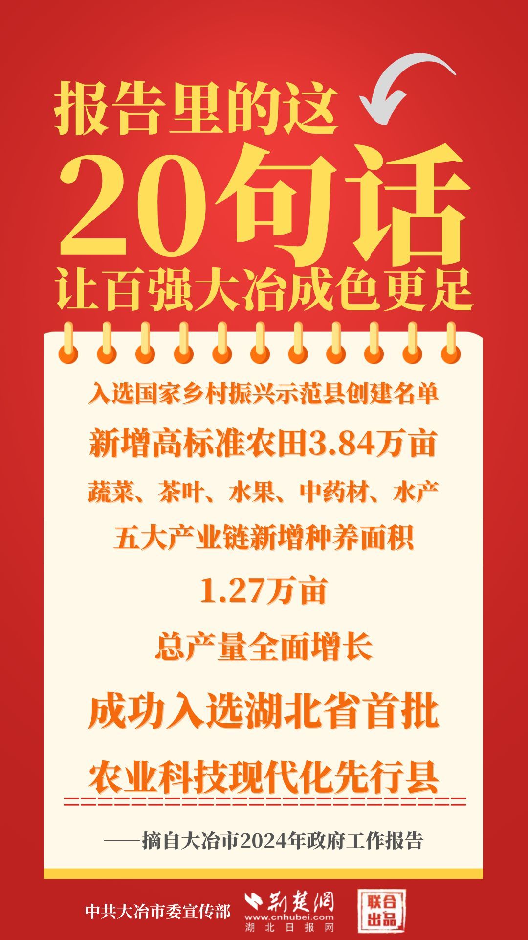 1月12日,大冶市第七屆人民代表大會(huì)第四次會(huì)議開幕,大冶市委副書記、市長(zhǎng)孫輒作政府工作報(bào)告。報(bào)告里的這20句話,讓百強(qiáng)大冶成色更足。