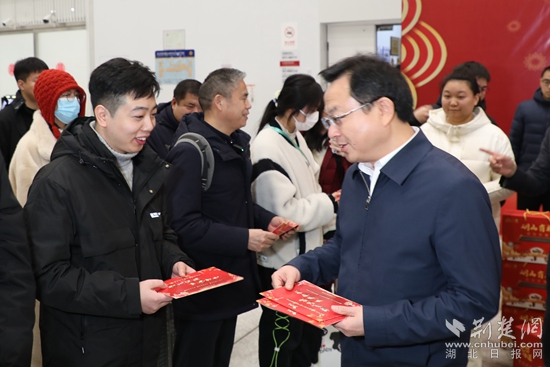 “感謝大家一年來為鄂州發(fā)展作出的貢獻(xiàn),這次通過免費送建設(shè)者返鄉(xiāng)等多種舉措,希望能讓大家感受到鄂州這座城市的溫度。”在機場航站樓一樓大廳,湖北省總工會領(lǐng)導(dǎo)及鄂州市領(lǐng)導(dǎo)向外來務(wù)工人員代表贈送裝有鄂州特產(chǎn)的年貨禮包,并致以誠摯美好的新春祝福。