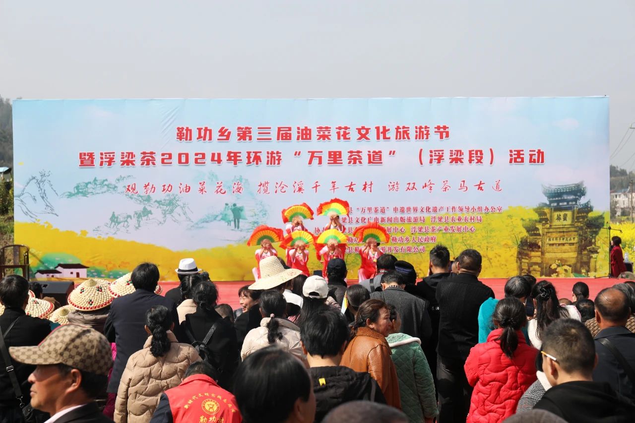 春光燦爛無限好,油菜花開遍地黃。3月19日,勒功鄉(xiāng)舉行第三屆油菜花文化旅游節(jié)暨浮梁茶2024年環(huán)游“萬里茶道”(浮梁段)活動。本屆油菜花節(jié)以“觀勒功油菜花海、攬滄溪千年古村、游雙峰萬里茶道”為主題,立足地方特色、風光、生態(tài),將當?shù)氐臍v史文化、風土人情與油菜花海緊密結合,全面提升勒功旅游知名度和文化軟實力。增進了游客對于“萬里茶道”(浮梁段)的了解。