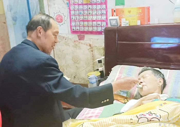 尤國才,男,漢族,1948年9月生,中共黨員,黃岡市黃梅縣孔壟鎮(zhèn)張?zhí)链?組村民。1995年,妻子不幸患上帕金森癥,耗盡全部積蓄四處求醫(yī),他無怨無悔;每日兩次活絡(luò)按摩,他從不間斷;照料臥床妻子擦身護(hù)理,他任勞任怨。27年來,守護(hù)患病妻子、養(yǎng)育年幼兒女,尤國才先后榮獲“黃岡最美退役軍人”“黃梅縣第六屆道德模范”“黃岡好人”等榮譽稱號。
