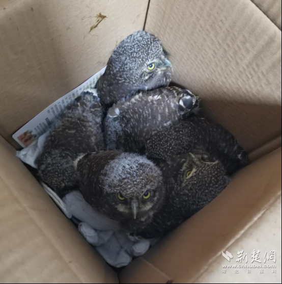 荊楚網(wǎng)(湖北日?qǐng)?bào)網(wǎng))訊 (通訊員 陳張川琦)4月24日,在孝南區(qū)楊店鎮(zhèn)的一片樹木周圍,4只可愛的貓頭鷹幼崽不慎從巢穴墜落至地面。幸運(yùn)的是,它們被熱心群眾及時(shí)發(fā)現(xiàn),并送往孝南區(qū)野生動(dòng)物和森林植物保護(hù)監(jiān)測(cè)站(以下簡(jiǎn)稱“野保站”)得到了細(xì)心救助。緊接著,在4月30日,又有6只貓頭鷹幼崽在孝南區(qū)三汊鎮(zhèn)的高壓線附近被群眾發(fā)現(xiàn)并送至野保站。