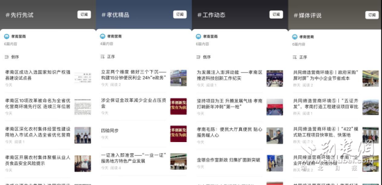 “孝南營商”公眾號共有“孝新快遞”“孝納百川”“孝親熱線”三個欄目: