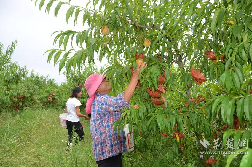 6月2日,走進(jìn)黃桃采摘園,只見(jiàn)漫山遍野的黃桃樹(shù)郁郁蔥蔥,一棵棵黃桃樹(shù)枝上掛滿了穿著“紙外衣”的黃桃,壓彎枝頭,采摘下來(lái),打開(kāi)套袋黃燦燦的黃桃格外誘人,讓人垂涎欲滴。游客們穿梭在桃樹(shù)中,一手拿桶,一手采摘,盡情享受著采摘的樂(lè)趣。