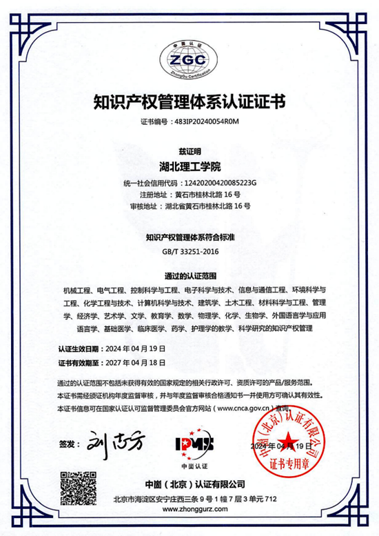 通過知識產(chǎn)權(quán)管理體系認證,標志著湖北理工學院在知識產(chǎn)權(quán)創(chuàng)造、運用、保護、管理邁上了新臺階。接下來,湖北理工學院將以通過知識產(chǎn)權(quán)管理體系認證為契機,緊緊圍繞應(yīng)用型高校建設(shè)與知識產(chǎn)權(quán)事業(yè)高質(zhì)量發(fā)展主題,進一步激發(fā)創(chuàng)新活力,促進學校知識產(chǎn)權(quán)創(chuàng)造質(zhì)量、運用效益及管理水平和服務(wù)能力的全面提升。