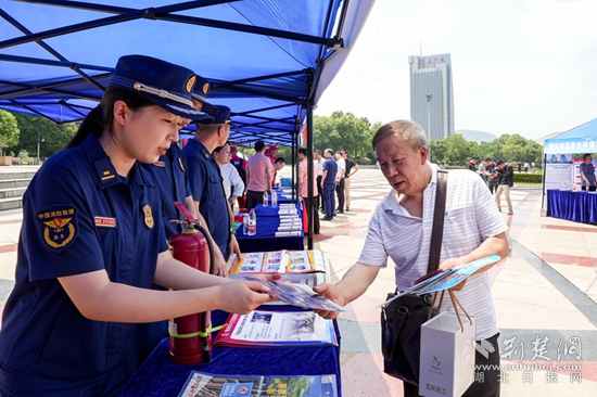 同時,黃石市消防救援支隊支隊依托活動,精心準備以防火、滅火、逃生為主要內(nèi)容的宣傳單、宣傳手冊、掛圖等宣傳資料以及咨詢臺,發(fā)放《居家防火指南》《燃氣安全提示》《各類場所逃生知識》、消防宣傳畫報等800余份宣傳資料,提醒廣大人民群眾要提高消防安全意識和自防自救能力,確保自身安全。
