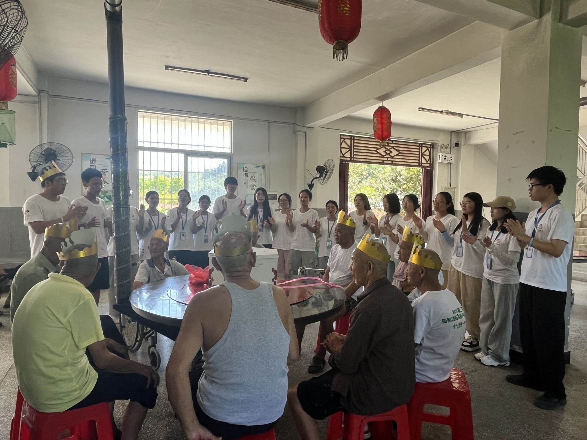 中午,大別山支教團(tuán)志愿者和福利院工作人員一起配菜做菜,煮長(zhǎng)壽面,通過唱生日祝福歌、表演手勢(shì)舞、做小游戲等方式為老人慶祝生日?!拔矣X得老年人生活很不方便也很不容易,想用自己的力量給他們帶來溫暖,希望社會(huì)多多關(guān)心關(guān)愛老人?!崩霞沂谴笪蚩h宣化店鎮(zhèn)的第十三屆大別山支教團(tuán)成員、湖北大學(xué)研究生林青說。