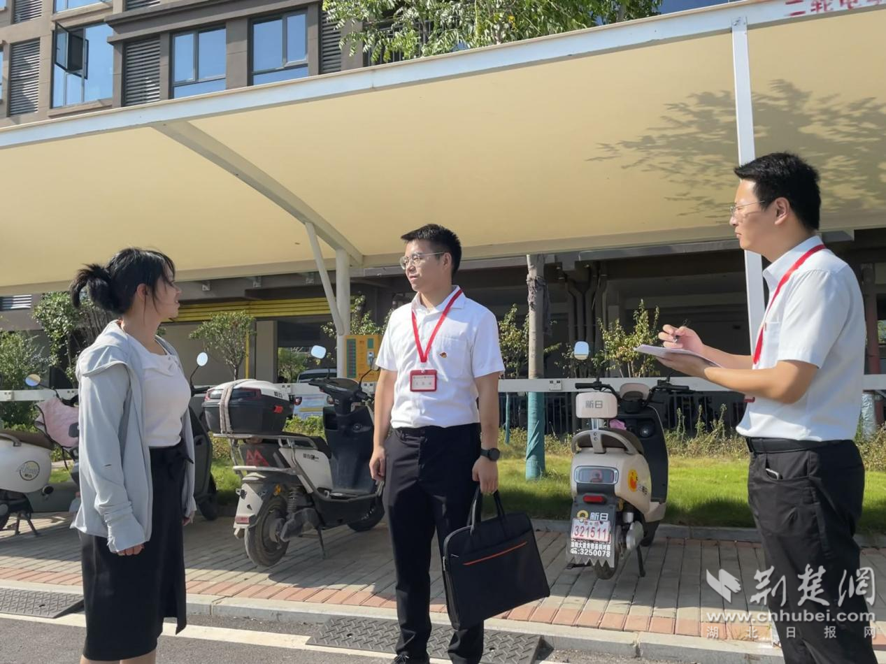 圖為該市紀檢監(jiān)察干部在雙河家園小區(qū)了解充電設(shè)施安裝情況。