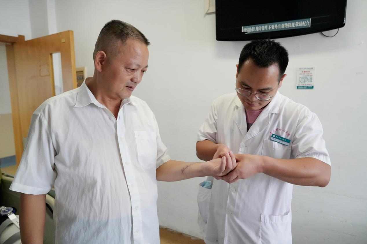 出院時(shí),吳航為患者檢查恢復(fù)情況。通訊員 供圖