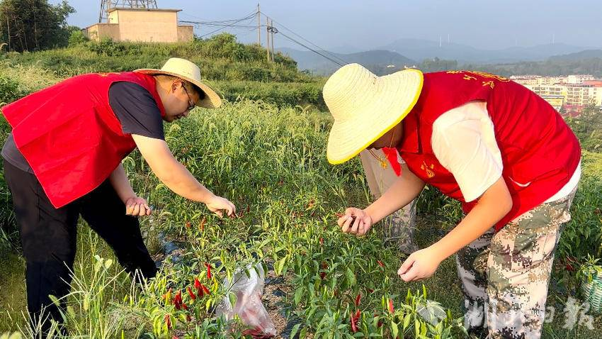 當天,志愿者們化身“采椒能手”,穿梭于紅綠交錯的田間,手不停歇地采摘成熟的辣椒,與農(nóng)戶一起投入到緊張而有序的工作中。經(jīng)過一天的努力,志愿者們共采摘辣椒超過1800斤,極大地加快了辣椒的采收進度。此外,志愿們還為農(nóng)戶送去了礦泉水、綠茶等防暑降溫物資,確保他們能夠及時補充水分,預(yù)防中暑。