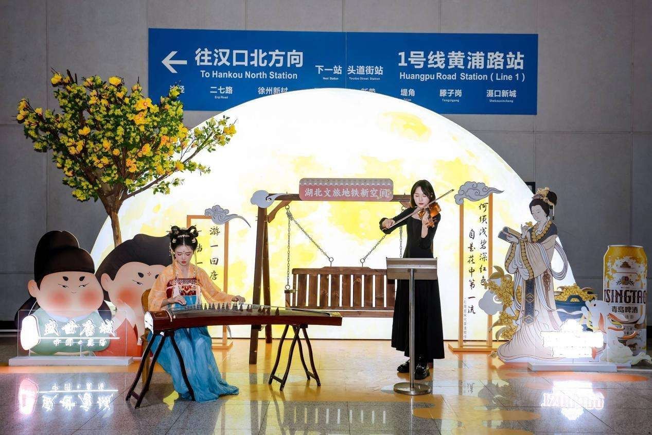 金秋九月,武漢地鐵站內(nèi)一場(chǎng)跨越千年的文化對(duì)話正在上演。悠揚(yáng)的古箏音符與婉轉(zhuǎn)的小提琴旋律在空中交織,《月亮代表我的心》的樂聲回蕩在現(xiàn)代化的地鐵站內(nèi),為往來匆忙的乘客們帶來了一場(chǎng)沉浸式的地鐵“賞月”之旅,引得現(xiàn)場(chǎng)游客陣陣歡呼。